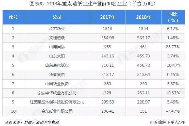 另外,從中國造紙協(xié)會公布的數(shù)據(jù)來看,中國重點造紙業(yè)企業(yè)中玖龍紙業(yè)產(chǎn)量最大,超過1300萬噸。