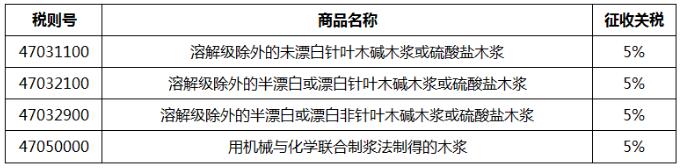 涉及木漿稅則號一覽表