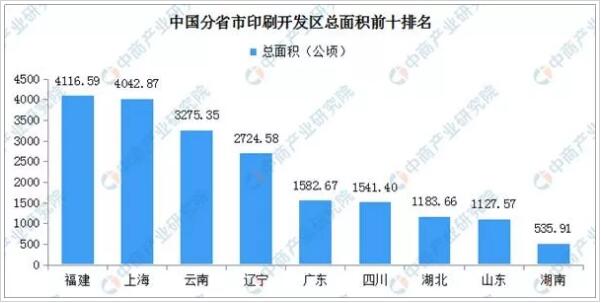 來源:中商產(chǎn)業(yè)研究院整理 從面積來看,福建省的印刷開發(fā)區(qū)合計(jì)面積最大,達(dá)4116.59公頃;其次為上海市,印刷開發(fā)區(qū)合計(jì)面積達(dá)4042.87公頃,僅福建省、上海市印刷開發(fā)區(qū)合計(jì)面積超4000公頃。除了上述省市以外,云南、遼寧、廣東、四川、湖北、山東的印刷開發(fā)區(qū)面積在1000公頃以上,分別為3275.35公頃、2724.58公頃、1582.67公頃、1541.40公頃、1183.66公頃、1127.57公頃。