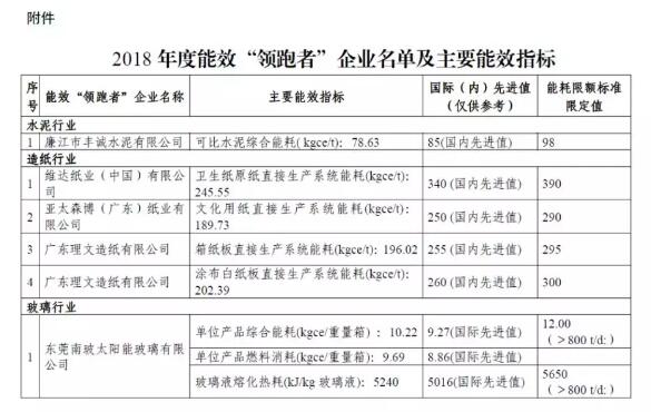 根據(jù)廣東省重點行業(yè)能效對標行動部署要求,經(jīng)廣東省工業(yè)和信息化廳組織省內(nèi)有關(guān)行業(yè)協(xié)會開展的行業(yè)企業(yè)對標、評選工作,確定了水泥、玻璃、造紙、鋼鐵、紡織、石化等行業(yè)2018年度行業(yè)能效“領(lǐng)跑者”企業(yè),并于近日將上述六個行業(yè)2018年度行業(yè)能效“領(lǐng)跑者”企業(yè)名單及主要產(chǎn)品(工序)能效指標予以公布。在造紙行業(yè)中,維達紙業(yè)(中國)有限公司的衛(wèi)生紙原紙、亞太森博(廣東)紙業(yè)有限公司的文化用紙、廣東理文造紙有限公司的箱紙板和涂布白紙板直接生產(chǎn)系統(tǒng)能耗均領(lǐng)先于國內(nèi)先進值水平。