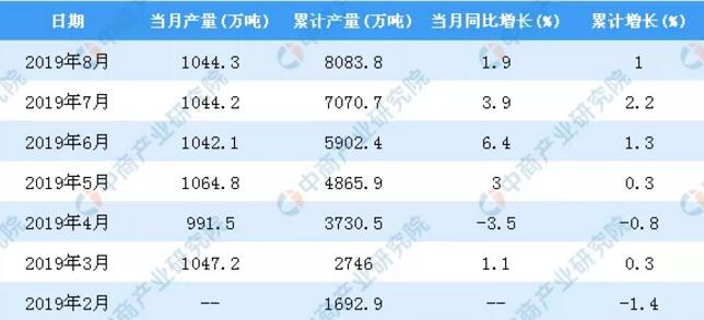 數(shù)據(jù)來源:中商產(chǎn)業(yè)研究院數(shù)據(jù)庫 2019年1-8月全國機(jī)制紙及紙板產(chǎn)量統(tǒng)計(jì)數(shù)據(jù)