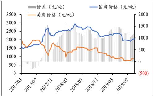 數據來源:公共資料整理 國廢和美廢價格及價差