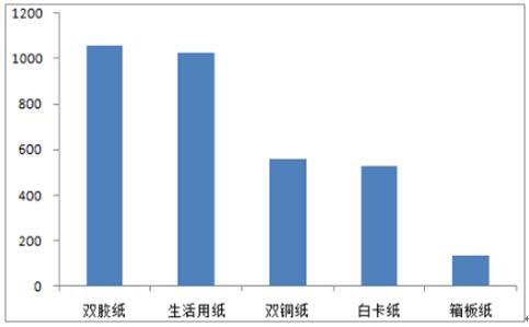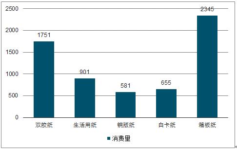 數據來源:公開資料整理 從絕對消耗量上,雙膠紙約1057萬噸,生活用紙1024萬噸,銅版紙562萬噸,白卡紙528萬噸,箱板紙132萬噸。 2018年各紙種消耗木漿量
