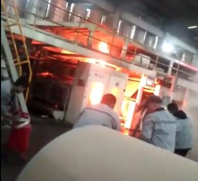 11月28日晚間,一個“單面機起火”的視頻在各大行業群中出現。視頻中,某紙板廠內,一條成色較新的瓦楞紙板生產線在工作過程中起火,短時間內就冒出較大火光,數名工人正在拿起滅火器等消防設備撲火。