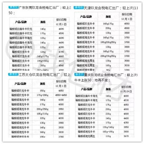 ▲圖片來源:找包材 江蘇理文:12月2日起,箱板紙價格上調50元/噸。 廣東理文:11月30日宣布H紙、Q紙價格上調50元/噸,B紙上調20元/噸。