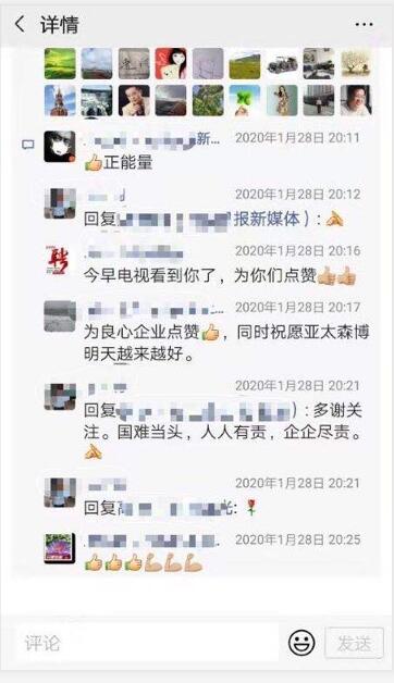 公司管理層成員陳小榮、陳寶香、邱勇、曾金郎等,雖不能回到現(xiàn)場(chǎng),也通過微信、電話關(guān)心指導(dǎo);王偉國、肖光彩、馬克順等也是要么調(diào)度生產(chǎn),要么在捐贈(zèng)現(xiàn)場(chǎng)忙碌。 “全力保障生產(chǎn),與全市人民共同抗擊疫情,這是我們當(dāng)前最大的政治任務(wù)。為打贏這場(chǎng)全民抗擊疫情的戰(zhàn)爭(zhēng),我們責(zé)無旁貸!”范豐濤擲地有聲的話語,是對(duì)亞太森博企業(yè)社會(huì)責(zé)任精神的詮釋。