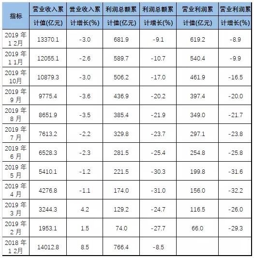 縱觀整個1月的情況,紙漿價格累計上漲21.2元/噸,漲幅達(dá)到0.53%;瓦楞紙價格下跌1.8元/噸,跌幅0.051%。 2月3日,國家統(tǒng)計局公布了2019年全國規(guī)模以上工業(yè)企業(yè)經(jīng)營數(shù)據(jù)。