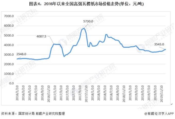 瓦楞紙箱是指使用瓦楞紙板經(jīng)過印刷、模切、釘箱或糊盒制成的包裝用紙容器。作為一種外包裝,瓦楞紙箱主要起到運(yùn)輸過程中的儲(chǔ)存、保護(hù)作用,其印刷內(nèi)容可還起到美化外觀、展示產(chǎn)品、廣告宣傳的作用。與金屬、塑料、玻璃包裝產(chǎn)品相比,瓦楞紙箱廢棄物較少、易于回收再利用,并且印刷時(shí)主要采用無毒易分解的環(huán)保水性油墨,是公認(rèn)的“綠色包裝產(chǎn)品”,廣泛地應(yīng)用于家電、電子產(chǎn)品、IT、食品飲料、圖書、日化、紡織品等下游行業(yè)中。 瓦楞包裝屬于紙包裝的一種,是指用紙和紙板等原材料,進(jìn)一步加工制成紙制品的生產(chǎn)活動(dòng);并利用加工制造出來的瓦楞紙、紙板、紙箱、紙盒等進(jìn)行相關(guān)行業(yè)產(chǎn)品包裝服務(wù)的一系列活動(dòng)。 瓦楞包裝行業(yè)受原材料價(jià)格影響較大 箱板瓦楞紙包裝行業(yè)作為典型的中游行業(yè),以上游造紙企業(yè)生產(chǎn)的箱板瓦楞紙?jiān)堊鳛樵牧希瑢⑼呃慵埾洚a(chǎn)成品提供給下游食品飲料、電子、家電等消費(fèi)領(lǐng)域公司以及物流快遞公司。