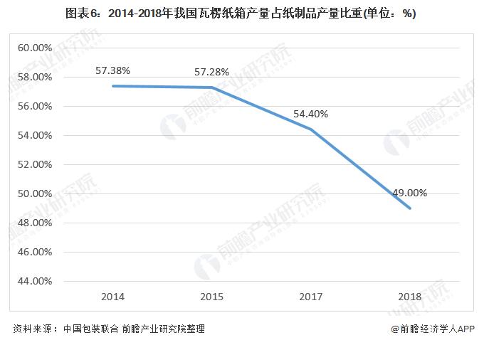 與世界主要國(guó)家相比,我國(guó)瓦楞紙箱行業(yè)雖然起步較晚,但增長(zhǎng)十分迅速。早在2003年,我國(guó)便已超過日本成為全球第二大瓦楞紙箱生產(chǎn)國(guó),僅次于美國(guó)。根據(jù)中國(guó)包裝聯(lián)合會(huì)統(tǒng)計(jì),2018年,我國(guó)瓦楞紙箱產(chǎn)量為2733.46萬噸,占當(dāng)年紙制品產(chǎn)量的49.00%。