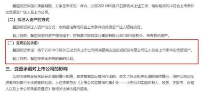 董事長(zhǎng)、董秘等多次被處分 記者了解到,在此之前,銀鴿投資時(shí)任董事長(zhǎng)、董秘等高管因增持股票未達(dá)承諾目標(biāo)、資產(chǎn)重組失敗等原因,被監(jiān)管部門多次處分。 2018年2月2日,銀鴿投資稱,因公司擬籌劃收購(gòu)明亞保險(xiǎn)經(jīng)紀(jì)66.67%股權(quán),公司股票于2月2日起停牌。然而,停牌近3個(gè)月之后,銀鴿投資又稱,收購(gòu)標(biāo)的公司控股股東購(gòu)佳杉資產(chǎn)51%的劣后合伙份額及普通合伙份額,因交易價(jià)格變化導(dǎo)致不再構(gòu)成重組。 2019年9月30日,上交所對(duì)銀鴿投資時(shí)任董事長(zhǎng)兼董事會(huì)秘書(shū)顧琦,時(shí)任董事會(huì)秘書(shū)羅金華、邢之恒通報(bào)批評(píng),并通報(bào)中國(guó)證監(jiān)會(huì),記入上市公司誠(chéng)信檔案。 上交所表示,交易方案及收購(gòu)標(biāo)的調(diào)整,是籌劃重大交易時(shí)應(yīng)審慎考慮、及時(shí)披露的事項(xiàng)。而銀鴿投資在披露重大資產(chǎn)重組進(jìn)展公告時(shí),未在相關(guān)進(jìn)展公告中就收購(gòu)標(biāo)的、交易價(jià)格的調(diào)整等可能導(dǎo)致重組終止的事項(xiàng)及相關(guān)風(fēng)險(xiǎn)予以充分提示。公司有關(guān)重大資產(chǎn)重組的信息披露不及時(shí),風(fēng)險(xiǎn)揭示不充分。 2018年6月12日,顧琦等高管發(fā)布公告稱,計(jì)劃自公告披露之日起6個(gè)月內(nèi)以自有資金增持公司股份,增持金額不低于2000萬(wàn)元、不高于4000萬(wàn)元。 等到增持計(jì)劃履行期屆滿時(shí),銀鴿投資披露公告稱,顧琦和時(shí)任董秘羅金華已增持部分股票,增持金額合計(jì)549.50萬(wàn)元,并擬將本次增持計(jì)劃期限延長(zhǎng)6個(gè)月。 2019年5月26日,銀鴿投資披露董事、高級(jí)管理人員終止增持計(jì)劃的公告稱,增持股份所需資金未能籌措到位,導(dǎo)致原增持計(jì)劃的實(shí)施遇到困難,上述增持主體決定終止增持計(jì)劃。 對(duì)此,今年2月5日,上交所對(duì)顧琦等責(zé)任人就其未履行增持承諾一事,進(jìn)行通報(bào)批評(píng)。 間接控股股東兩次延緩注入資產(chǎn)承諾 2016年11月9日,銀鴿投資原間接控股股東河南能源化工集團(tuán)與深圳市鰲迎投資管理有限公司(以下簡(jiǎn)稱鰲迎投資)簽署了股權(quán)轉(zhuǎn)讓協(xié)議。河南能源化工集團(tuán)同意將其持有的銀鴿集團(tuán)100%股權(quán)轉(zhuǎn)讓給鰲迎投資,并于2017年3月15日完成了股權(quán)轉(zhuǎn)讓工商變更登記手續(xù)。 股權(quán)轉(zhuǎn)讓完成后,鰲迎投資承接了河南能源化工集團(tuán)資產(chǎn)注入承諾,并明確“將于2019年5月26日之前向銀鴿投資注入符合上市條件的優(yōu)質(zhì)資產(chǎn)”。就在承諾期限即將到期時(shí),鰲迎投資召開(kāi)董事會(huì)議,將承諾期限延長(zhǎng)至2020年5月26日之前。 3月16日,銀鴿投資再次發(fā)布公告稱,鰲迎投資擬延長(zhǎng)承諾期限,力爭(zhēng)在未來(lái)的一年內(nèi),亦即2021年5月26日前完成上述工作,將收購(gòu)標(biāo)的中符合上市條件之優(yōu)質(zhì)資產(chǎn)注入至上市公司。 銀鴿投資表示,鰲迎投資自完全持有銀鴿集團(tuán)100%股權(quán)以來(lái)一直積極致力于履行注入資產(chǎn)承諾,為銀鴿投資尋找符合上市條件的主業(yè)和非主業(yè)之資產(chǎn),并多次對(duì)潛在標(biāo)的進(jìn)行了可行性研究和初步調(diào)研,然而受市場(chǎng)環(huán)境變化的影響,關(guān)于并購(gòu)標(biāo)的的進(jìn)一步盡調(diào)、交易架構(gòu)、資產(chǎn)剝離等有關(guān)方案始終未能與出讓方達(dá)成一致意向。 同時(shí),由于新冠肺炎疫情的暴發(fā),鰲迎投資正常經(jīng)營(yíng)活動(dòng)受到影響,相關(guān)并購(gòu)計(jì)劃的談判和磋商一再擱淺和延緩。這導(dǎo)致注入符合上市條件的優(yōu)質(zhì)資產(chǎn)存在極大不確定性,預(yù)計(jì)短期難以實(shí)現(xiàn)。 截至目前,銀鴿集團(tuán)持有銀鴿投資47.35%的股權(quán),由于借款糾紛等原因,被多地法院輪候凍結(jié)。