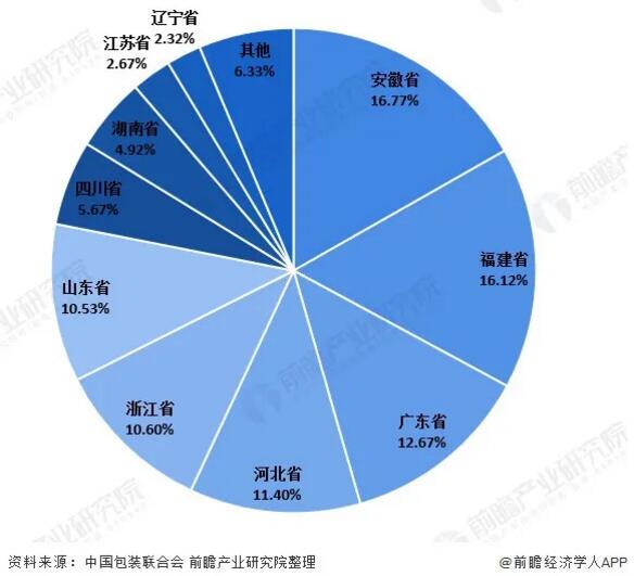 根據中國包裝協會數據統計,2019年全國紙箱板完成累計產量1301.56萬噸,同比增長6.62%。產量排在前五位的地區依次是安徽省、福建省、廣東省、河北省和浙江省。