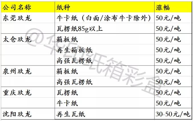 5月下旬至今,已有100多家紙廠跟漲50-200元/噸 6月初這波行情起于5月下旬。紙箱查查監測顯示:當時,玖龍三大基地聯手拉漲,理文、聯盛、山鷹等100余家紙廠跟調,漲幅50-200,浙江山鷹廢紙甚至3天連漲4次,市場普遍看漲。 東莞玖龍紙業:5月25日上調?垉r格50元/噸,上調再生牛卡紙價格50元/噸。 太倉玖龍紙業:5月25日起上調再生?垉r格50元/噸。 重慶玖龍紙業:5月25日起上調地龍再生、江龍再生箱板紙價格50元/噸,上調箱板紙價格50元/噸。 另一大佬理文方面于5月20日全線領漲后,5月29日廣東理文再次小幅上調包裝紙價格,這也是搶先一步為接下來6月的紙業行情奠定了上漲的基調。 在經歷了上半年長達幾個月的疫情停產、艱難復工、訂單萎縮之后,不少紙廠都蠢蠢欲動,陸續搶在5月底6月初展開了漲價“攻勢”,急切地想彌補此前的虧空。 部分紙廠漲價函 河南亨利紙業:由于近期原材料價格持續上漲,造成生產成本增加,從6月3日起我司紙價上調50元/噸。 瀏陽市銀河紙業:鑒于目前國產廢紙快速上調及其它政策等因素的影響,導致本公司的生產成本大幅上漲,從6月1日起本廠瓦紙價格上調100元/噸。 東莞市金田紙業:由于受原材料價格普遍上漲的影響,公司決定自6月1日起對金娃牌環保?垉r格上調50元/噸。本次調價含之前已收的預付款及未交付的訂單。 東莞建暉紙業:受原材料及其它綜合成本上升影響,5月28日起我司生產的各種等級涂布灰底白板紙價格上調100元/噸。 江門市明星紙業:由于廢紙等原材料價格上漲,公司決定從5月29日起所有系列紗管紙上調50元/噸。 玉田縣順發實業:因受近日原材料價格持續增漲,貨源緊張的因素且環保成本增加,公司決定自5月22日起所有克重及品項的成品紙每噸上調50元。 此外,為了給廣大客戶提供更優質的?,江門市明星紙業通知6月3日-22日對二車間牛卡紙機臺進行技術改造,共計停機檢修20天,并提醒各客戶提前做好用紙安排! 據廣東部分紙板廠反饋,5月下旬玖龍的領漲并未起到明顯的市場帶動作用。受疫情及下游需求影響,行業信心依然不足,紙板廠依舊觀望為主、庫存不高,價格處于穩中小幅下行狀態。故紙廠方面也寄希望于通過6月初再次漲價來刺激一些需求,調動起整個產業鏈,讓上下游企業都能緩一口氣,甚至是續一段命。于是就有了這一次的聯動漲價! 據業內專家分析,本次瓦楞紙、箱板紙漲價的特征是時間一致、幅度一致,三大龍頭全部參與!如果龍頭本輪漲價成功,行業就會重復2019年小幅慢跑的漲價模式——30、50的慢慢漲,下游純做紙板的工廠將會很難受!