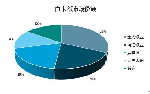 智研咨詢發布的《2020-2026年中國白卡紙行業市場分析預測及投資方向研究報告》數據顯示:截至2019年末我國白卡行業產能口徑CR4為85%,其中APP(金光紙業)市占率32%、博匯紙業市占率20%。金光紙業收購博匯紙業之后,APP+博匯在白卡行業的合計市占率將達到52%,行業龍頭地位進一步確立,白卡紙行業集中度進一步提升。 白卡紙市場份額