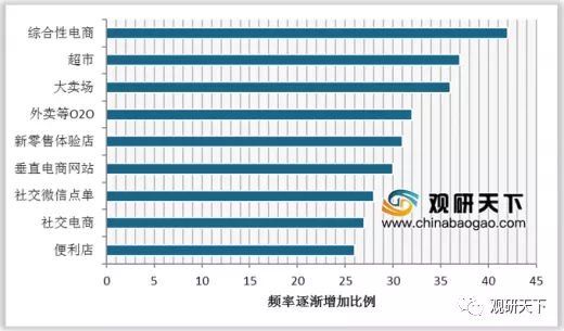 數(shù)據(jù)來源:公開資料 同時(shí),疫情使線上渠道消費(fèi)習(xí)慣更為普及,且在疫情之后仍有望繼續(xù)保持。據(jù)相關(guān)數(shù)據(jù)顯示,消費(fèi)者在疫情之后,在電商平臺(tái)消費(fèi)頻率逐漸增加比例最高,達(dá)42%。 疫情之后各消費(fèi)渠道頻率變化趨勢(shì)