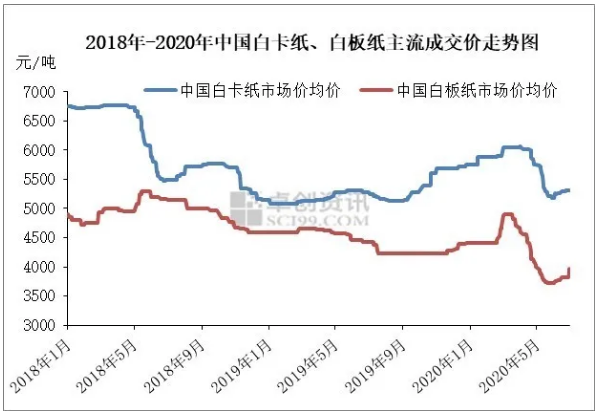 導語:2020年白卡紙市場表現平平,前半場涼了內需,后半場出口需求慘淡。在經歷急漲快跌后在終在年中收尾之前小幅拉漲,市場心態一涼再涼后業者轉為觀望。伴隨政策消息面提振,下半年供需面仍將繼續博弈。 價格篇:白卡紙急漲快跌后,小幅拉漲