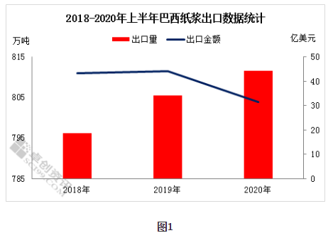巴西公共衛生事件仍在蔓延,作為全球最大的商品漿生產國,紙漿產銷關系到全球紙漿供應穩定,隨著這進出口數據的陸續公布,卓創資訊帶你看上半年巴西紙漿市場“虛”與“實”。 巴西國內疫情蔓延迅速紙漿供應量不減反增 2月25日巴西發現第一例新冠疫情病例后,新增感染人數持續增加,5月17日后每日新增確診病例穩定于1萬例以上。巴西紙漿供應量能否穩定成為全球造紙市場業者的焦點,特別是6月初巴西淡水河谷鐵礦石供應受疫情影響宣布停機后,紙漿減產的推斷顯得愈發合理。市場發展不是簡單的主觀推斷,更需要客觀的信息和數據支撐。巴西疫情爆發后,當地主要漿廠都采取及時、完善的防疫措施,Suzano公司實行疫情期間特殊期間工作模式,且為了確保紙漿供應穩定,推遲上半年年度檢修至下半年。Klabin成立了應急委員會,不斷評估預防和抵抗COVID-19的最佳做法,確保生產連續性。數據方面,如圖1所示,2020年上半年巴西紙漿出口量延續增長趨勢,較2019年同期增加1%,達到812萬噸。綜合來看,疫情影響紙漿供應減量為虛,巴西漿廠積極控制,確保穩定供應為實。