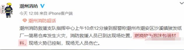 8月22日上午,廣東省潮州市潮安區(qū)沙溪鎮(zhèn)一紙廠的簡(jiǎn)易倉(cāng)庫(kù)發(fā)生火災(zāi)。接到報(bào)警后,潮安區(qū)消防救援大隊(duì)迅速調(diào)派6輛消防車,36名消防員趕赴現(xiàn)場(chǎng),同時(shí)調(diào)派周邊金石、龍湖、浮洋等鎮(zhèn)專職消防隊(duì)到場(chǎng)協(xié)助處置。