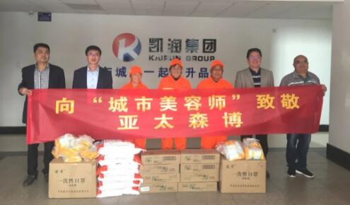 10月26日,在山東省第二十六屆環(huán)衛(wèi)工人節(jié)之際,亞太森博(山東)漿紙有限公司為日照經(jīng)濟(jì)技術(shù)開發(fā)區(qū)環(huán)衛(wèi)工人送來了一批口罩、洗衣粉、肥皂等保潔用品,感謝這些“城市美容師”為開發(fā)區(qū)干凈整潔的城市環(huán)境做出的貢獻(xiàn)。這是亞太森博Founder’s Day2020系列活動(dòng)的一部分。