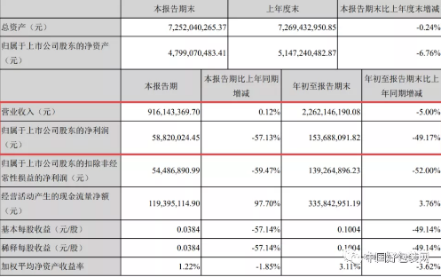 美盈森 今年第三季度,美盈森實現營收9.16億元,同比增長0.12%;實現歸屬于上市公司股東的凈利潤5882萬元,同比下降57.13%。 而今年前三季度,美盈森實現營收22.62億元,同比下降5%;實現歸屬于上市公司股東的凈利潤1.54億元,同比下降49.17%。