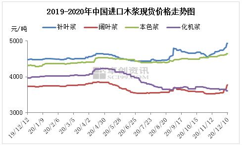 本周進口木漿現貨市場成交偏剛需,但受利多消息面支撐,其中針葉漿、闊葉漿報盤相繼上揚。影響價格走勢的原因主要有以下幾點:第一,進口木漿外盤相繼報漲,尤其是東南亞闊葉漿外盤、針葉漿獅牌外盤的拉漲,給予業者信心面支撐;第二,紙漿期貨主力合約繼續強勢拉漲,12月10日最高點在5256元/噸,再創年內新高,帶動現貨市場報盤上揚;第三,針葉漿外盤成交情況良好,另外受海運費報漲消息、宏觀面預期轉好、下游部分原紙企業頻發漲價函,支撐漿市;第四,主要地區及港口紙漿港口庫存窄幅累庫,下游文化用紙、生活用紙價格提漲動力支撐略顯不足,漿市放量偏剛需 卓創資訊監測數據顯示,截至12月10日,進口針葉漿周均價4871元/噸,較上周上升2.66%,同比上升8.63%;進口闊葉漿周均價3707元/噸,較上周上升3.88%,同比下降0.77%;進口本色漿周均價4627元/噸,較上周上升0.60%,同比上升6.71%;進口化機漿周均價3623元/噸,較上周下降0.68%,同比下降8.27%。 1.2 國產非木漿市場回顧