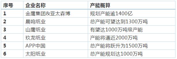 據業內的統計數據,2019年全國造紙企業仍然有一千多家,但實際上,造紙行業的產能卻越來越集中。根據包小編不完全統計,目前產能已經達1000萬噸級,或規劃產能達1000萬噸級的紙業巨頭高達六家,這在全球也是絕無僅有的。 表五,國內千萬級產能造紙企業一覽表