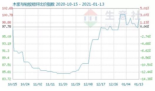 2、1月13日木漿與瓦楞紙比價(jià)指數(shù)為103.97 生意社1月14日訊,1月13日木漿與粘膠短纖商品比價(jià)指數(shù)為99.97,較前一日上升了2.48點(diǎn),較周期內(nèi)最高點(diǎn)117.10點(diǎn)(2019-03-25)下降了14.63%,較2020年11月25日最低點(diǎn)85.30點(diǎn)上漲了17.20%。(注:周期指2019-01-01至今)