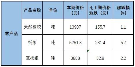 其中林產品領域,1月中旬與1月上旬相比,紙漿價格上漲281.4元,漲幅5.7%;瓦楞紙價格上漲82.8元,漲幅2.2%。