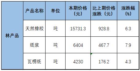 其中林產(chǎn)品領(lǐng)域,2月下旬與2月中旬相比,紙漿價格上漲467.7元,漲幅7.9%;瓦楞紙價格上漲176.2元,漲幅4.3%。