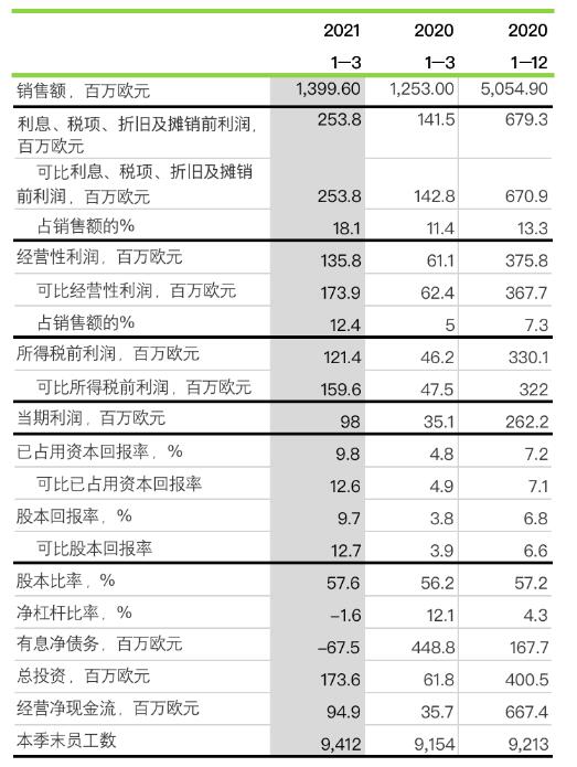 稅前利潤為1.21億歐元(去年同期:4600萬歐元)。可比稅前利潤為1.60億歐元(去年同期:4800萬歐元)。