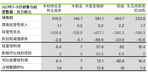歐洲建筑業出現回升,從而帶動木制品業的需求。而美國建筑業的活動水平反映在了全球建筑材料業的需求上。鑒于餐飲和旅游業的活動水平仍較低,且由于人們廣泛地開展遠程工作,生活用紙業務工業客戶的需求并未達到正常水平。與上一年相比,家庭購買量也有所下降,因此生活用紙業務的生產未達到滿負荷。