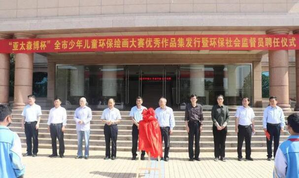 為迎接第50個世界環境日到來,6月5日上午,《共繪美好家園——“亞太森博杯”全市少年兒童環保繪畫大賽優秀作品集》發行暨環保社會監督員聘任儀式在亞太森博(山東)漿紙有限公司隆重舉行。市僑聯、市教育局、市生態環境局、日照日報社、共青團日照市委有關領導,8位受聘的環保社會監督員,90多名金海岸中學師生及公司管理層參加了儀式。