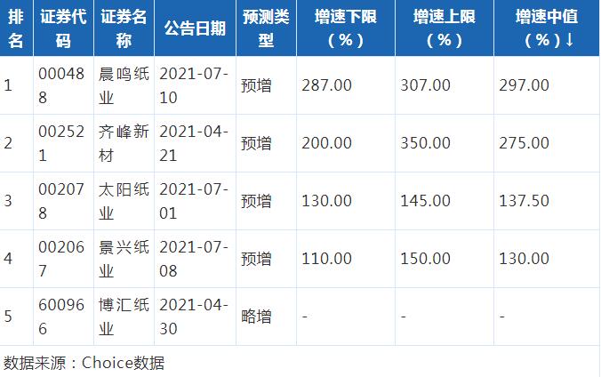 輕工制造-造紙行業(yè)預(yù)計歸母凈利潤排名