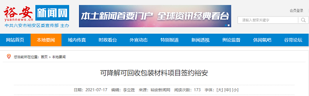 安徽傳羽物聯(lián)科技有限公司在裕安擬投資建設(shè)的可降解可回收紙質(zhì)包裝材料項(xiàng)目總投資5億元,其中一期投資約1億元,固定資產(chǎn)投資約0.3億元,一期租賃裕安區(qū)高新區(qū)創(chuàng)業(yè)園廠(chǎng)房約5000平方米。