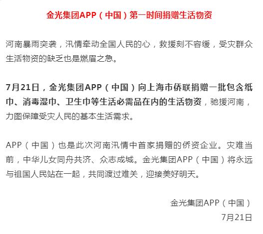 自7月16日以來,河南省暴雨肆虐,多地洪災,其省會城市鄭州市遭遇的特大暴雨,更是千年一遇的規模,不僅對當地人民的生命安全造成嚴重威脅,還令工業企業受損嚴重。  一方有難,八方支援。目前,應急管理部已調派7省消防救援水上救援專業隊伍馳援河南;國內多家知名企業向河南捐款捐物。在造紙、包裝產業,吉宏股份已宣布捐贈50萬元,金光集團APP(中國)第一時間捐贈生活物資! 部分工業企業受損嚴重 近日,在各大社交媒體上,街道變河、車站漏雨、水中救人等視頻迅速傳播,牽動著全國人民的心。筆者從業內人士的朋友圈看到,有企業的工廠完全被淹沒在暴雨之中,一部分原紙漂浮在水面上,一部分原紙幾乎完全濕透。 在其他工業領域,據央視財經消息,克明食品位于河南省內的廠區和經銷商部分受到暴雨影響。其中位于鄭州的四個經銷商倉庫被淹,損失情況正在統計中;位于新鄉市延津縣的一處工廠存有積水,固定資產和人員影響不大,正在組織員工進行排水工作。 另據其他媒體報道,受暴雨影響,海馬汽車的鄭州生產基地已斷水斷電,處于停工狀態,其中包括為小鵬汽車提供代工的海馬鄭州第三工廠。鄭州日產中牟工廠和東風日產鄭州分公司廠區部分點位受強降雨影響,正在進行緊急救援行動。