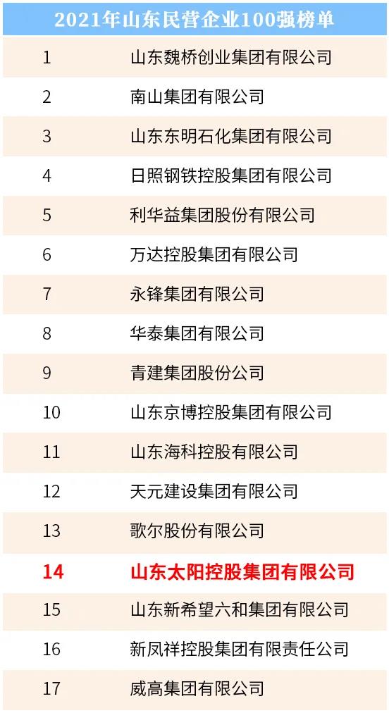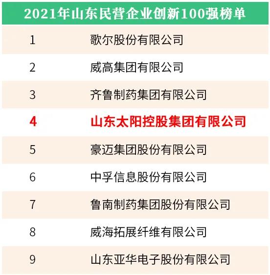 8月27日,山東省工商聯(lián)十三屆八次常委會議暨2021年山東民營企業(yè)100強(qiáng)發(fā)布會在濟(jì)南市山東大廈齊魯廳召開。山東太陽控股集團(tuán)有限公司(以下簡稱:太陽控股)蟬聯(lián)山東民營企業(yè)100強(qiáng),位列第14位。同時(shí),太陽控股入選山東民營企業(yè)創(chuàng)新100強(qiáng),位列第4位,彰顯了企業(yè)在科研創(chuàng)新上的強(qiáng)大實(shí)力。