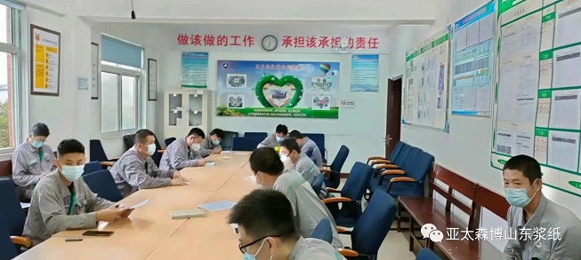 每天正式上班之前,亞太森博(山東)漿紙有限公司各班組都會召開班前會,查找安全隱患,排查薄弱環(huán)節(jié),學習安全生產(chǎn)知識,讓每位員工精神抖擻地上班、安安全全地生產(chǎn)。