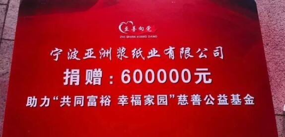 大愛無疆,砥礪前行,在助力共同富裕,建設幸福家園的新的偉大征程中,寧波亞洲漿紙業緊跟時代步伐,再次添上了自己應有的一筆。