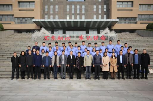 與會人員合影 開學典禮后,與會人員參觀了淄博職業學院智能制造基地。