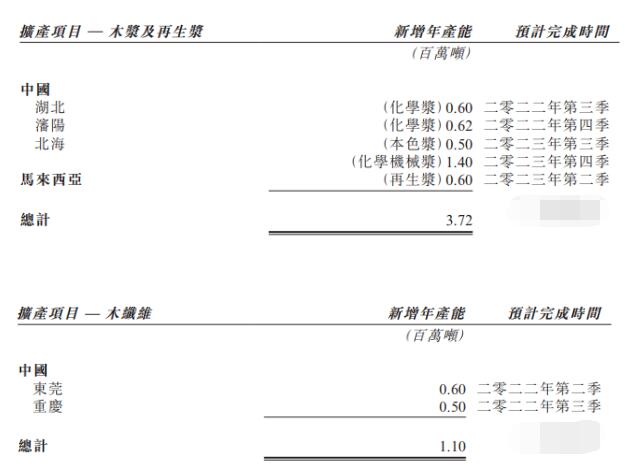 截至 2021年12月31日止,集團造紙總設計年產能為1757萬噸。預計于2022年,位于湖北新基地的120萬噸及馬來西亞基地的60萬噸卡紙產能將可投產;加上其他造紙項目,未來集團造紙產能將達到2382萬噸。