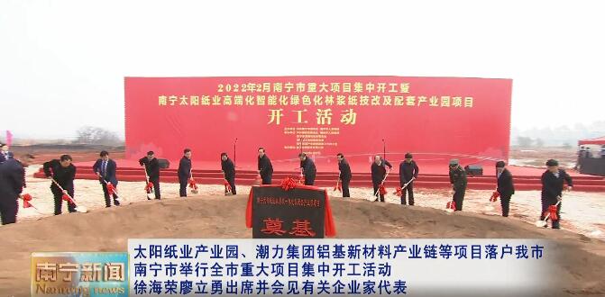 公司表示,南寧項目如果能順利實施,將太陽紙業廣西基地的“林漿紙一體化”工程向縱深方向發展,有利于廣西基地在產品結構優化、物流體系完善、銷售渠道建設等方面實現統籌協調發展。此外,也會使太陽紙業的山東、廣西和老撾“三大基地”進一步相互融合、相互補充,形成協同,有助于公司打造完備的原料供應體系和實現企業轉型升級,持續提升公司的核心競爭力和可持續發展能力,為公司開啟更加廣闊的成長空間。 據了解,南寧項目將由太陽紙業在南寧投資設立的全資子公司南寧太陽紙業作為實施主體。而根據公司2月25日晚的公告,南寧太陽紙業擬以15億收購廣西宏瑞泰紙漿有限責任公司持有的廣西六景成全投資有限公司(以下簡稱“六景成全”)100%股權。收購完成后,六景成全將成為公司全資孫公司。 公司表示,本次收購事項的順利實施將加快太陽紙業廣西基地南寧項目的落地進度,有利于廣西基地南寧項目的穩步推進,有利于公司廣西基地生產設施布局更加合理。 2月27日,南寧市舉行全市重大項目集中開工活動。參與集中開工的項目共有97個,總投資772.67億元,年度計劃投資158.49億元,項目涉及產業發展、市政基礎設施、社會民生等多個領域。自治區黨委常委、市委書記徐海榮,市委副書記、市長廖立勇出席開工活動。南寧太陽紙業高端化智能化綠色化林漿紙技改及配套產業園項目同期舉行了開工活動。 開工活動前一天,南寧市與山東太陽紙業股份有限公司簽署戰略合作框架協議,標志著太陽紙業高端化智能化綠色化林漿紙技改及配套產業園項目落戶我市。徐海榮、廖立勇會見太陽紙業董事長兼總經理李洪信,并共同見證簽約。徐海榮對李洪信一行到南寧投資興業表示歡迎,他表示,南寧作為廣西首府,自然資源豐富,區位優勢明顯,交通基礎優越,各項要素聚集。當前,南寧正全面貫徹習近平總書記視察廣西“4·27”重要講話精神和對廣西工作的系列重要指示要求,完整、準確、全面貫徹新發展理念,服務和融入新發展格局,堅持政策為大、項目為王、環境為本、創新為要,全面落實強首府戰略,按照“1+3”工作思路,堅定不移推進高質量發展,抓好防疫穩定安全“三件大事”,奮力建設新時代中國特色社會主義壯美廣西首善之地,以優異成績迎接黨的二十大勝利召開。南寧市推動高質量發展,離不開像太陽紙業這樣有實力的企業參與,希望雙方以此次合作為契機,加快項目建設步伐,推動項目早日取得實實在在成效。南寧市將進一步優化營商環境,用心用情做好服務,當好“有呼必應、無事不擾”的“店小二”,讓企業家安心放心創業干事,以實實在在的舉措提升企業獲得感滿意度,努力實現雙方合作共贏。 李洪信表示,南寧毗鄰東盟,區位、交通優勢明顯,當前正全面落實強首府戰略,加快建設特大城市,構建南寧大都市圈,尤其是加快東部產業新城建設、開通優化營商環境服務企業“直通車”等戰略舉措,進一步增強了企業投資的信心、創業的勁頭,吸引了大量企業前來尋求商機、共謀發展。太陽紙業將積極搶抓機遇,發揮自身優勢,把在南寧的投資項目建設成為環保標準一流、安全可靠性一流、技術水準一流、產品質量一流的世界性一流造紙產業園,爭取早日達產見效,為南寧高質量發展貢獻力量。