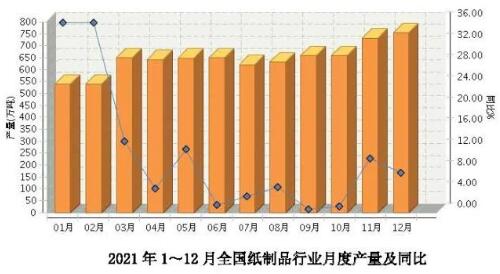 紙制品年產量7740萬噸 該份報告將紙和紙板容器制造行業分為箱紙板和紙制品兩部分,其中紙制品2021年全國累計完成產量7739.06萬噸,同比增長9.84%。