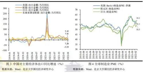 2022年4月,中國出口2736.2億美元,同比增長3.9%,較3月份回落10.8個百分比,出口下行壓力增加。