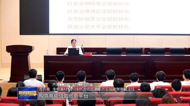 切實抓好山東省第十二次黨代會精神的學習宣傳貫徹,黨代表吉興香回到單位,深化宣傳解讀,狠抓落實,確保省黨代會精神落地生根、開花結果。 省第十二次黨代會結束第一天,黨代表吉興香剛返回齊魯工業大學工作崗位,就馬不停蹄進課堂、到實驗室,為師生們解讀會議精神。齊魯工業大學輕工學部主任、生物基材料與綠色造紙國家重點實驗室常務副主任吉興香:“強化科技戰略支撐,爭當國家高水平科技自立自強的排頭兵。第一個方面是構筑高能級的創新平臺。對我們來說,就是要把我們的國家重點實驗室、科研創新平臺的作用發揮好。”