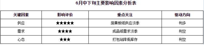 由此,卓創(chuàng)資訊預(yù)計(jì),6月中下旬廢黃板紙市場價(jià)格或繼續(xù)反彈后及時(shí)轉(zhuǎn)入下跌。首先,當(dāng)前成品紙推漲氣氛正在升溫,且廢黃板紙?zhí)幱诠⿷?yīng)淡季,廢黃板紙價(jià)格反彈走勢或因此延續(xù)。其次,當(dāng)前處于成品紙需求淡季,且國內(nèi)消費(fèi)有待恢復(fù),成品紙需求或難有較強(qiáng)表現(xiàn),此不利于廢黃板紙價(jià)格反彈深度。最后,打包站廢黃板紙庫存持續(xù)增加,一旦紙廠廢黃板紙價(jià)格漲勢暫緩,打包站或再次集中出貨,屆時(shí)廢黃板紙價(jià)格可能及時(shí)下跌。