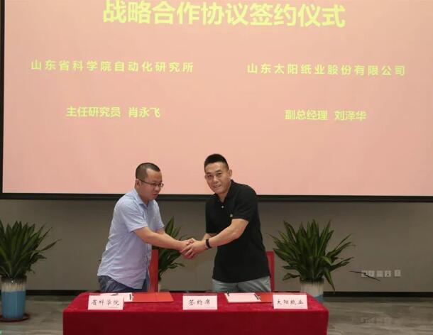在本次大會(huì)上,太陽(yáng)紙業(yè)與山東省科學(xué)院自動(dòng)化研究所、濟(jì)寧中科先進(jìn)院分別簽署戰(zhàn)略合作協(xié)議,舉行了濟(jì)寧先進(jìn)院-太陽(yáng)紙業(yè)超智能融合與柔性制造聯(lián)合實(shí)驗(yàn)室揭牌儀式。濟(jì)寧市制造強(qiáng)市指揮部新材料專班主任、市科技局副局長(zhǎng)蘇振,兗州區(qū)委常委、副區(qū)長(zhǎng)張銳,市派太陽(yáng)紙業(yè)駐企干部夏輝,山東省科學(xué)院自動(dòng)化研究所主任研究員肖永飛,中科院深圳先進(jìn)技術(shù)研究院濟(jì)寧分院院長(zhǎng)李長(zhǎng)雨等領(lǐng)導(dǎo)和專家出席大會(huì)并見證簽約揭牌。