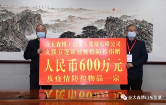 2022年,日照市以一己之力舉辦山東省第25屆運動會!斑@是日照市和山東省的大事,亞太森博一定積極支持!”企業負責人表示。亞太森博為省運會慷慨贊助800萬元人民幣,成為山東省第25屆運動會高級合作伙伴,公司志愿者還走訪省運會城市志愿服務驛站,送去了便民服務物資。 在疫情爆發初期,亞太森博在做好自身疫情防控的同時,整合各方優勢資源助力抗疫,成為日照市抗擊疫情的重要力量。企業捐贈600萬元人民幣支援五蓮新冠疫情防控,向全市捐贈1300多噸次氯酸鈉消毒液原液。企業被中國紅十字總會授予“中國紅十字博愛獎章”,被政府有關部門和組織授予“疫情防控先進單位”。