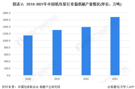 箱紙板是紙包裝行業(yè)的重要基礎(chǔ)材料及包裝材料,根據(jù)中國包裝聯(lián)合會數(shù)據(jù),2018-2021年中國紙包裝行業(yè)箱紙板產(chǎn)量呈不斷增長態(tài)勢,2021年產(chǎn)量規(guī)模達(dá)到1680.40萬噸,同比增長20.48%。