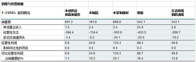 正如預期,芬林集團 2023 年第一季度的業績弱于上一季度,但仍表現出色。芬林梅沙木業和芬林生活用紙的季度業績創下新高。芬林紙板的紙板業務表現一如預期。芬林芬寶和芬林紙板的木漿業務領域,市場放緩速度快于預期,導致芬林紙板的業績表現低于預期。