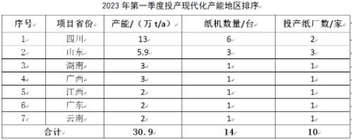 根據(jù)生活用紙委員會秘書處調(diào)研匯總,2023年1—3月,行業(yè)新投產(chǎn)現(xiàn)代化產(chǎn)能約30.9萬t/a,共14臺紙機(jī),全部為國產(chǎn)紙機(jī),與2022年1—3月投產(chǎn)產(chǎn)能62.4萬t/a相比,產(chǎn)能增幅明顯回落。