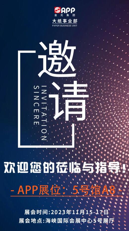 歡迎蒞臨APP(中國)展位,一起探討紙張產業的發展趨勢,共享行業的智慧與成果。期待與您相見于福州,共同見證紙張產業的繁榮發展!